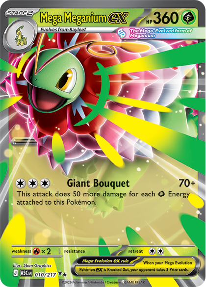 De Pokémon Ascended Heroes Mega Meganium ex bevat: