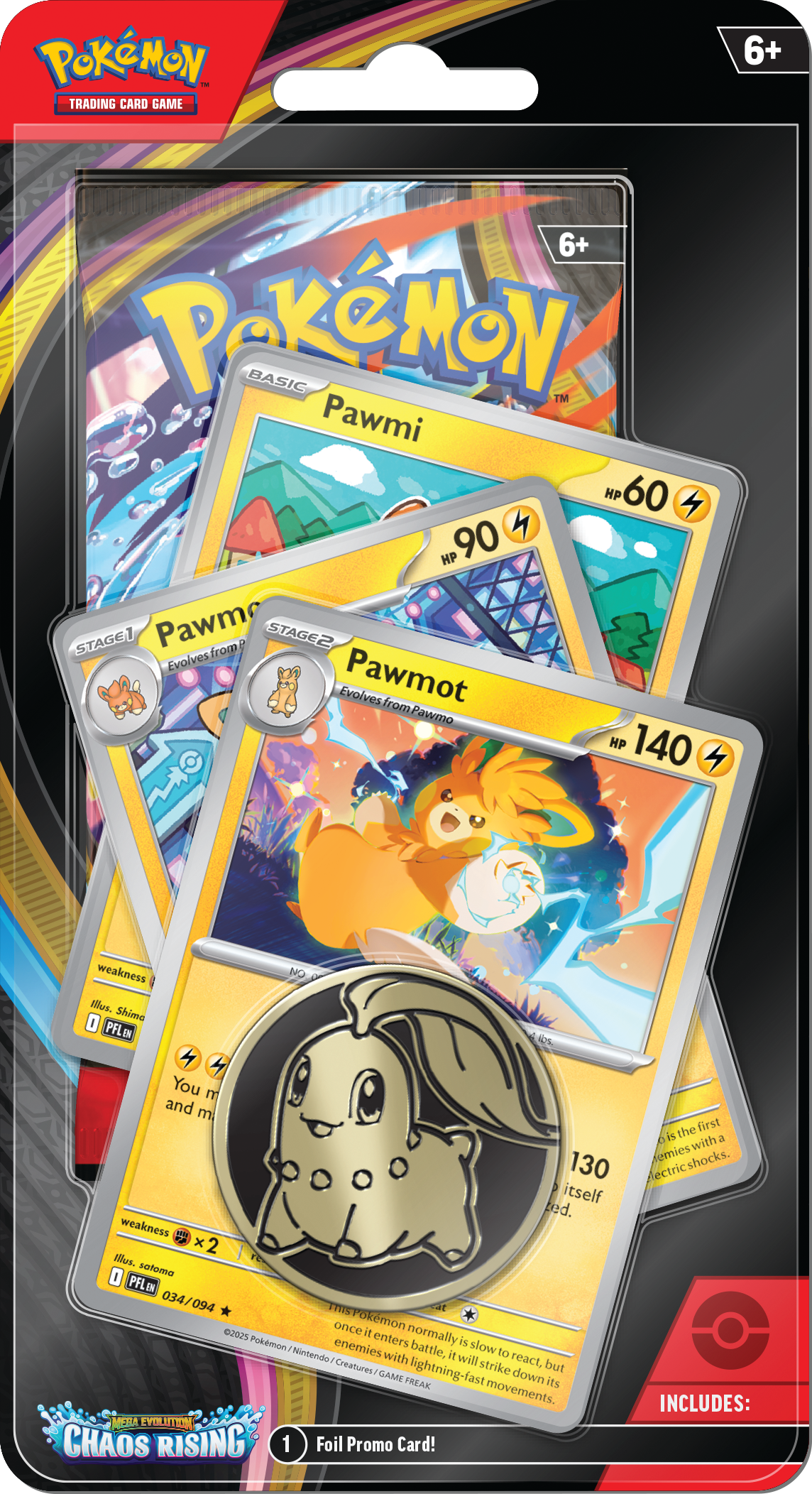 De Pokémon TCG: Pokémon Chaos Rising Premium Checklane Pawmot bevat: