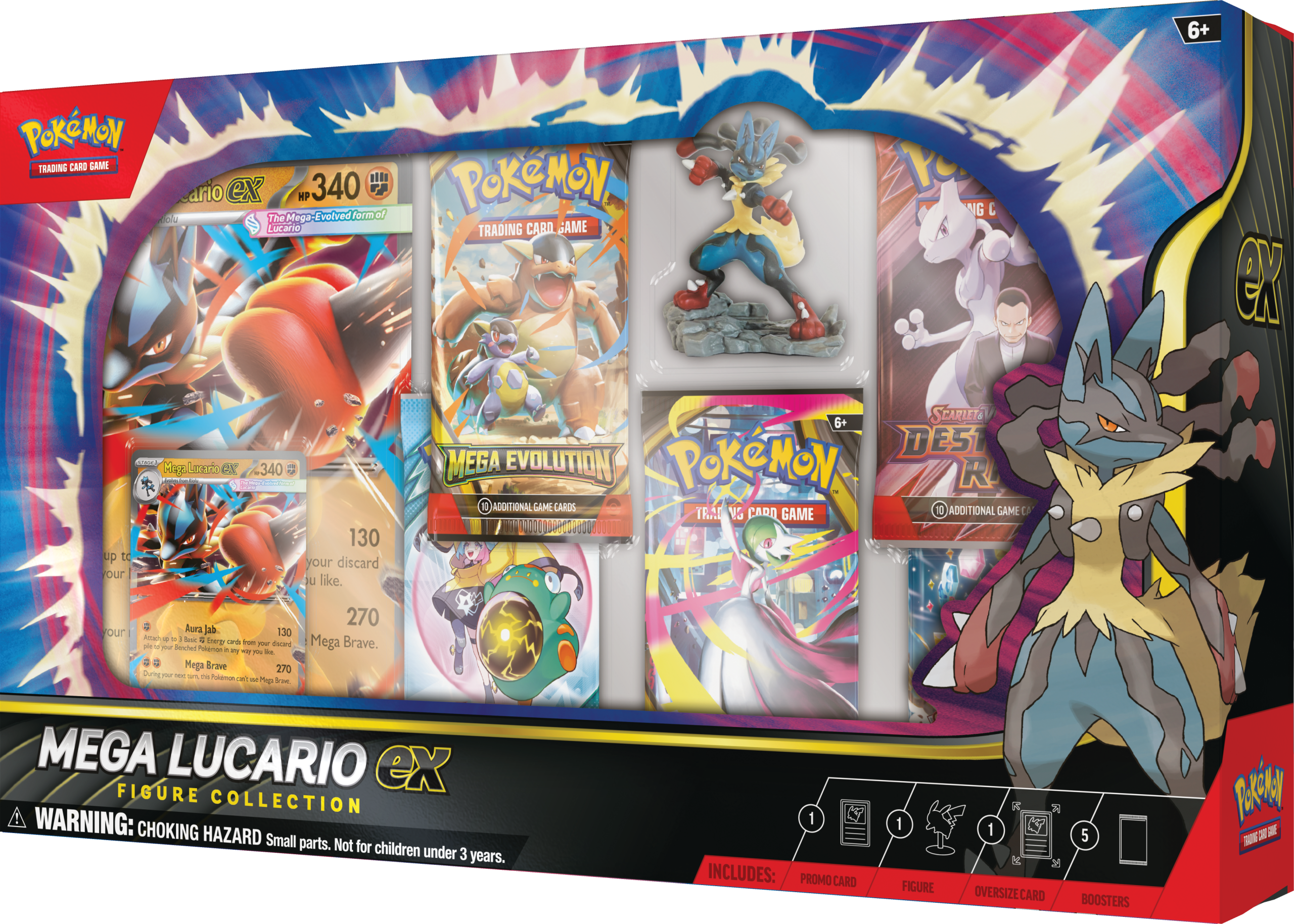 De Pokémon TCG: Mega Lucario Figure Collection bevat: