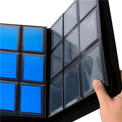 Hoge kwaliteit Portfolio in kunstleer met ritssluiting voor extra veiligheid! Met 9-pocket pagina’s geschikt voor alle standaard formaat TCG gaming kaarten in toploader.